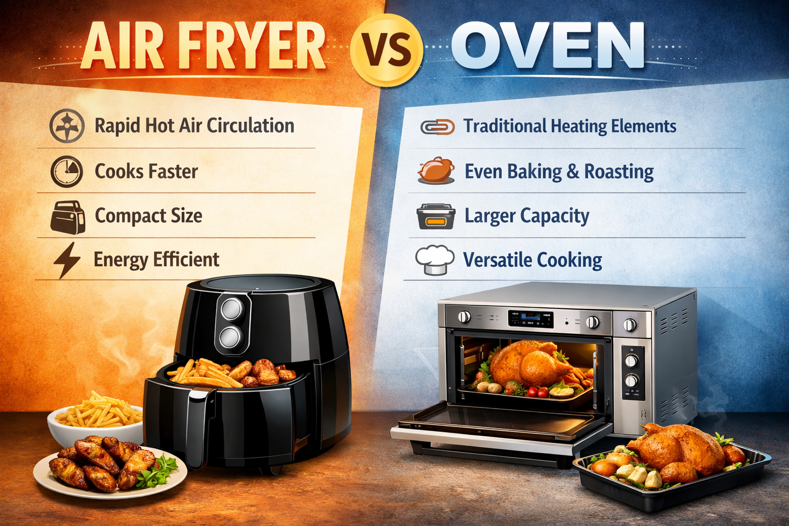 Air fryers and ovens are both popular kitchen appliances for baking and roasting, but they work in different ways and suit different cooking needs. In this comparison, we look at how an air fryer differs from a traditional oven in terms of cooking speed, capacity, energy use, and everyday convenience to help you decide which…