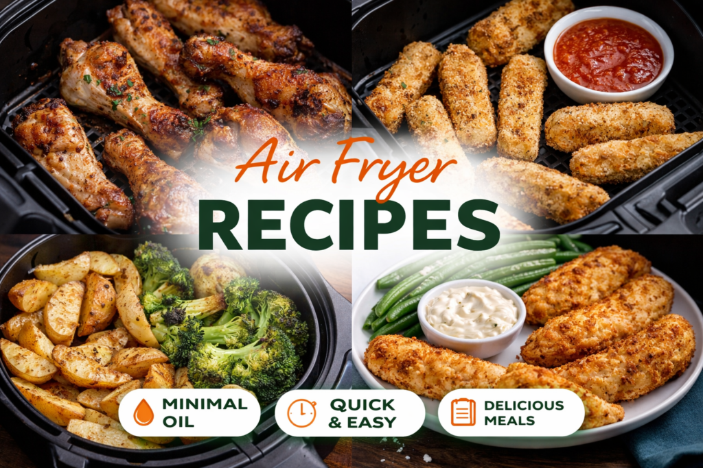 Welcome to our collection of easy and reliable air fryer recipes, designed to help you get the most out of your appliance. Whether you’re new to air frying or already use it daily, these recipes focus on simple ingredients, clear instructions, and consistently great results. From crispy chicken and roasted vegetables to quick weeknight meals, lighter comfort food, and even pizza made in an air fryer, every recipe is tested to be practical and beginner-friendly.